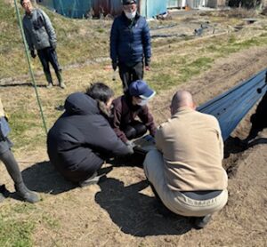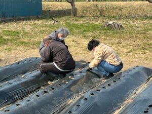 外作業の皆さんも手伝い、利用者さんほぼ全員でマルチを張ることができました。