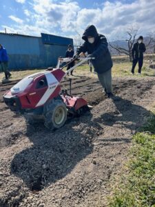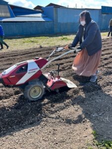 Sさんは積極的でくるりと耕運機を回すのがうまく、Tさんは最初緊張していましたが段々と慣れ始め、好奇心の強いIさんは支援員が横について行いました。